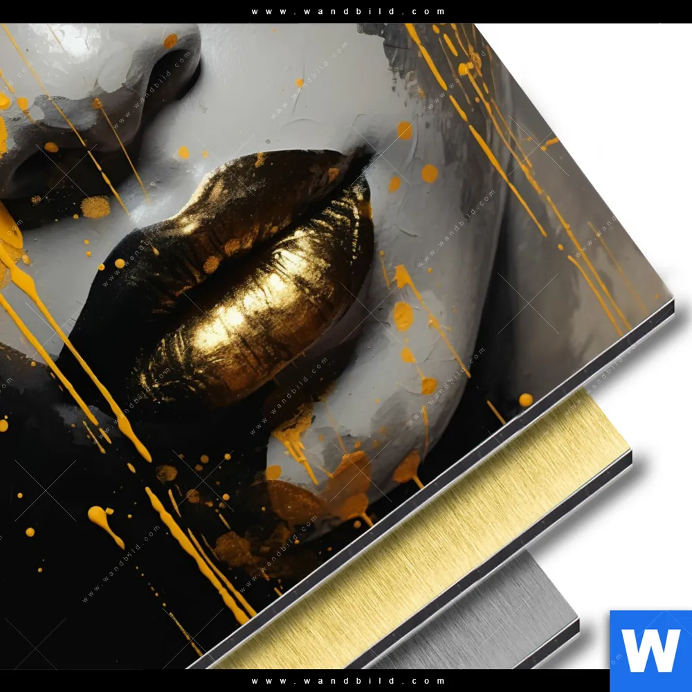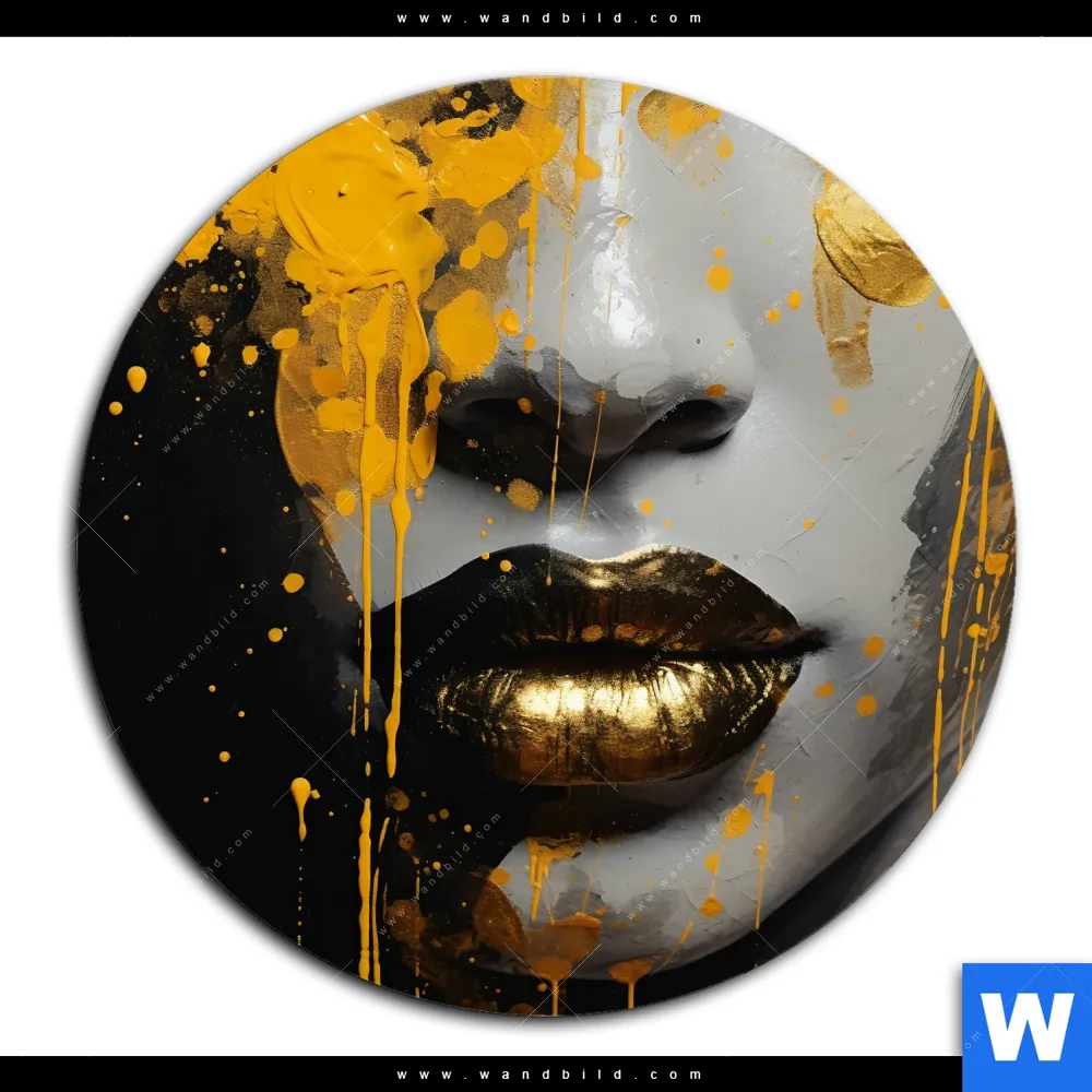 Aluminiumbild gebürstet | Frau mit Goldfarbe | Rund