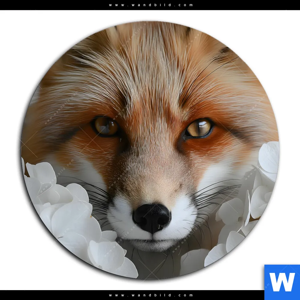 Aluminiumbild gebürstet | Friedlicher Fuchs und Blumen | Rund
