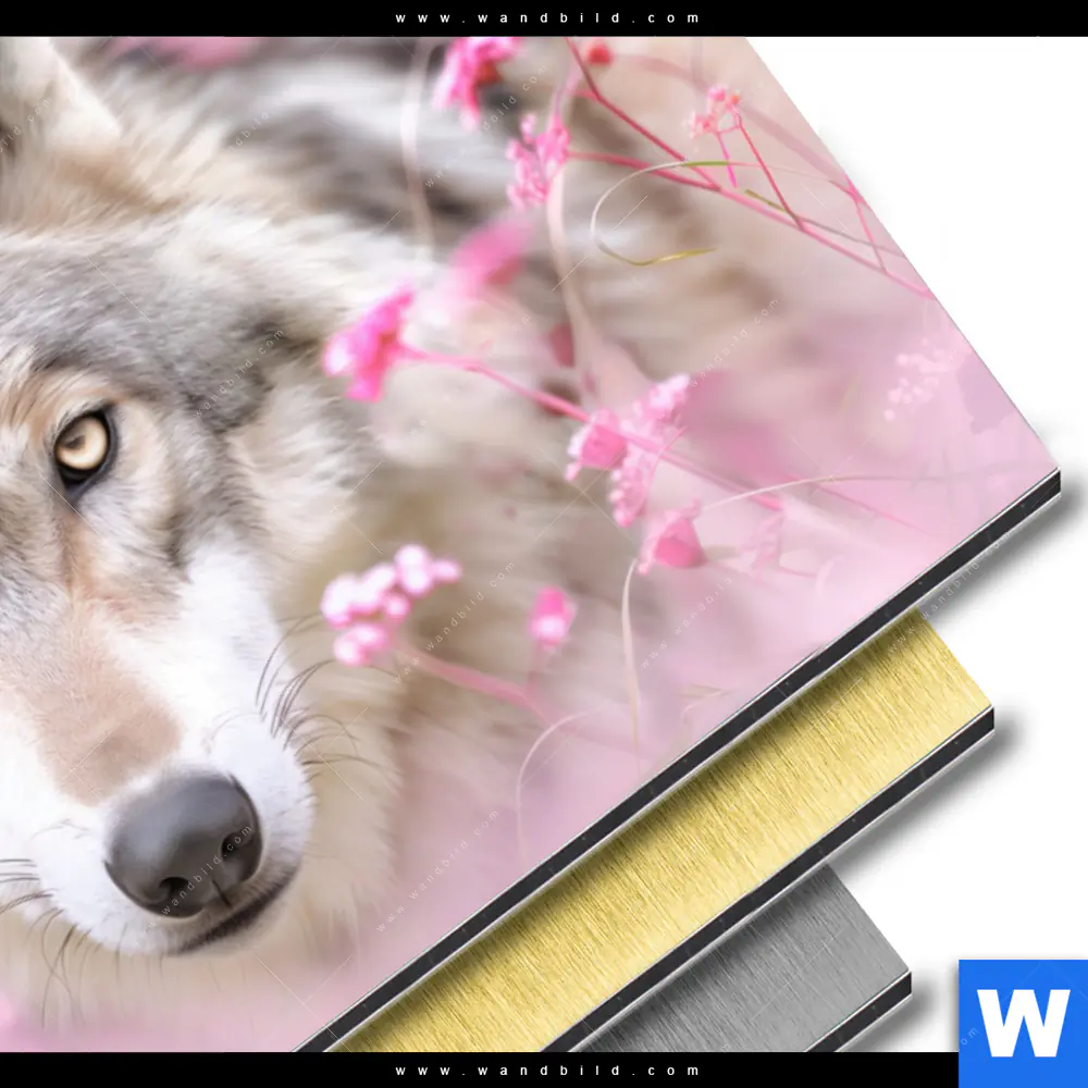 Aluminiumbild gebürstet | Friedlicher Wolf | Querformat
