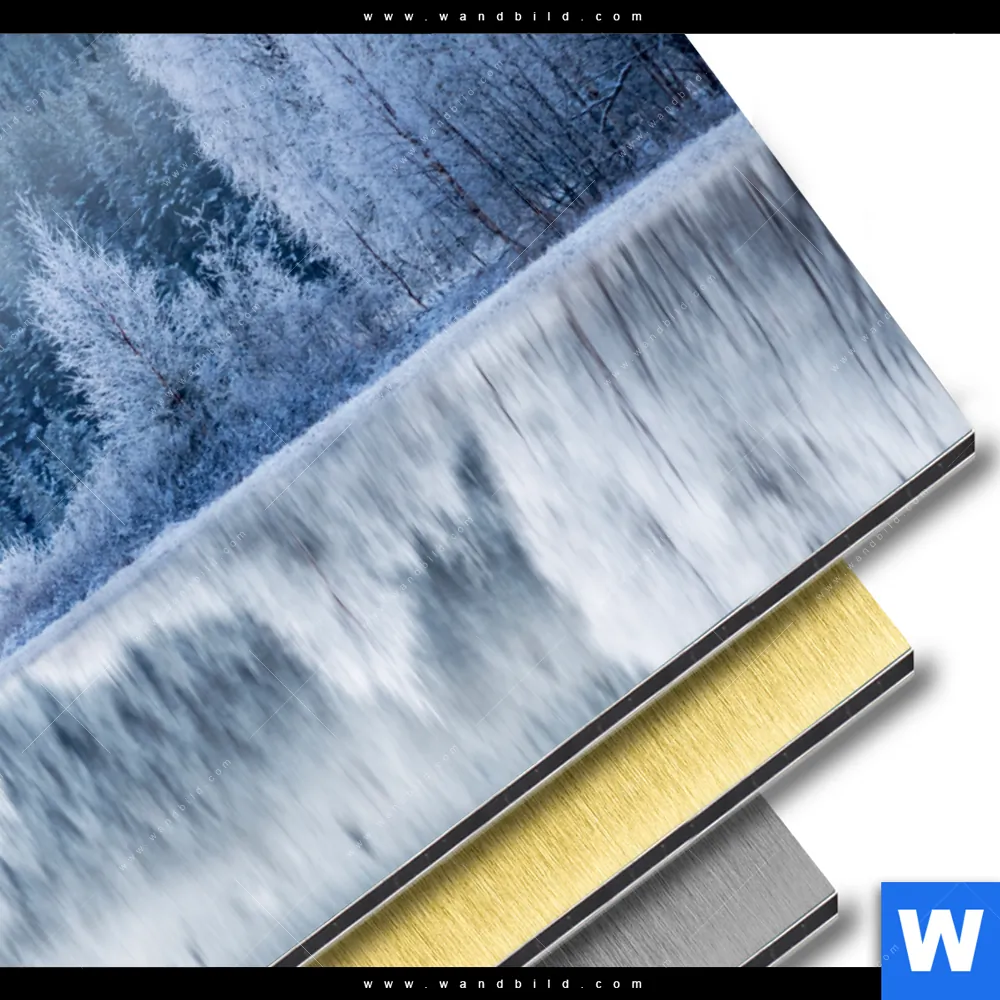 Landschaften, Wald - Bäume Aluminiumbild mit metallischem Effekt inkl. vormontiertem Rückrahmen