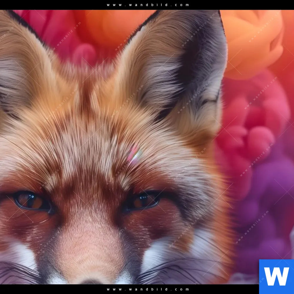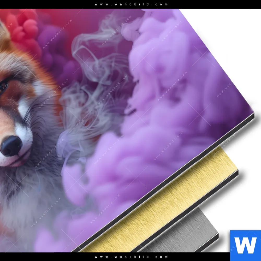 Aluminiumbild gebürstet | Fuchs in Farbnebel | Querformat