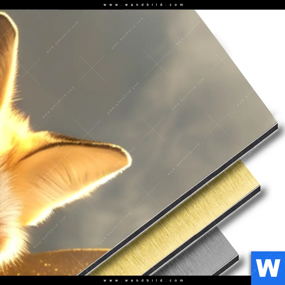 Aluminiumbild gebürstet | Fuchs mit goldenen Flügeln | Schmal