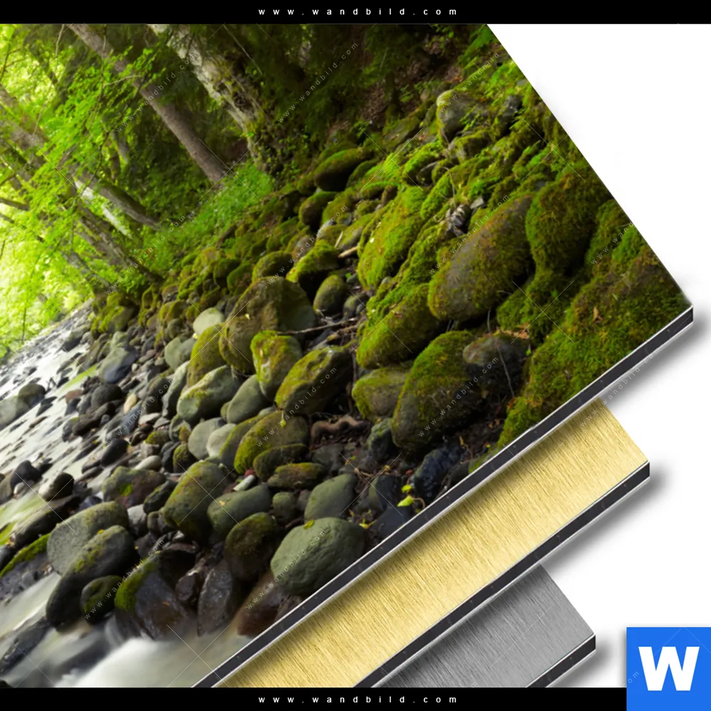 Aluminiumbild gebürstet | Gebirgsfluss im Wald | Querformat