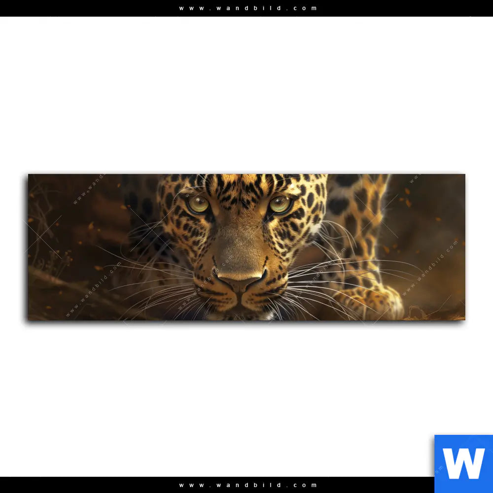 Aluminiumbild gebürstet | Geheimnisvoller Leopard | Panorama