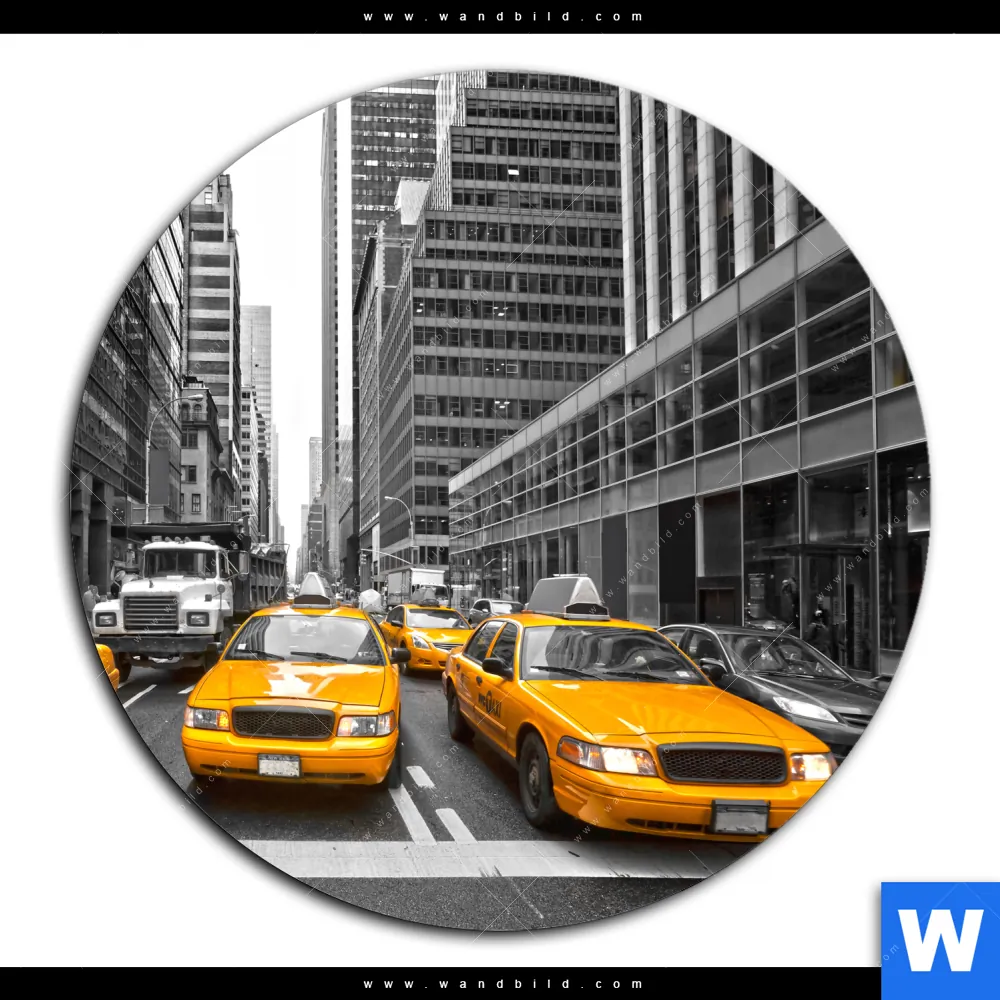 Aluminiumbild gebürstet | Gelbe Taxis New York | Rund