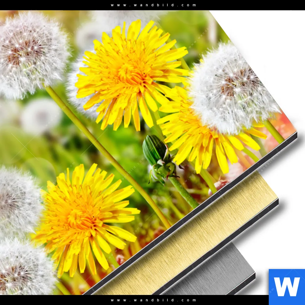 Aluminiumbild gebürstet | Gelber Löwenzahn | Querformat