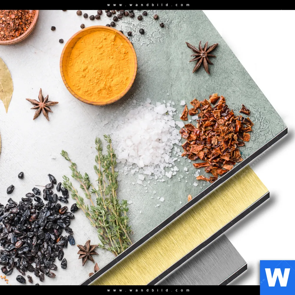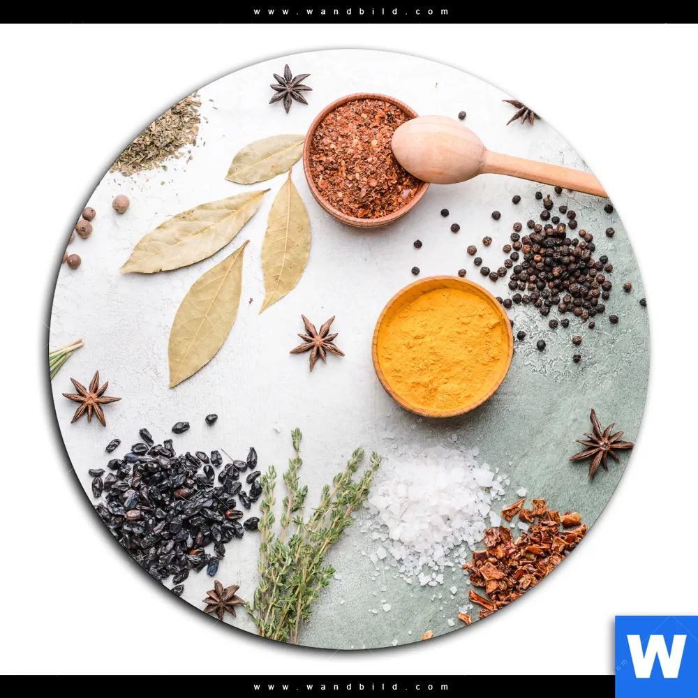 Aluminiumbild gebürstet | Gewürze auf hellem Untergrund | Rund