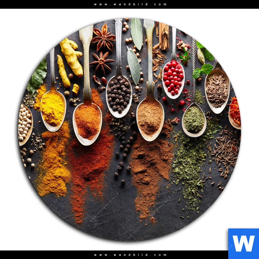 Aluminiumbild gebürstet | Gewürze auf Löffeln No. 2 | Rund