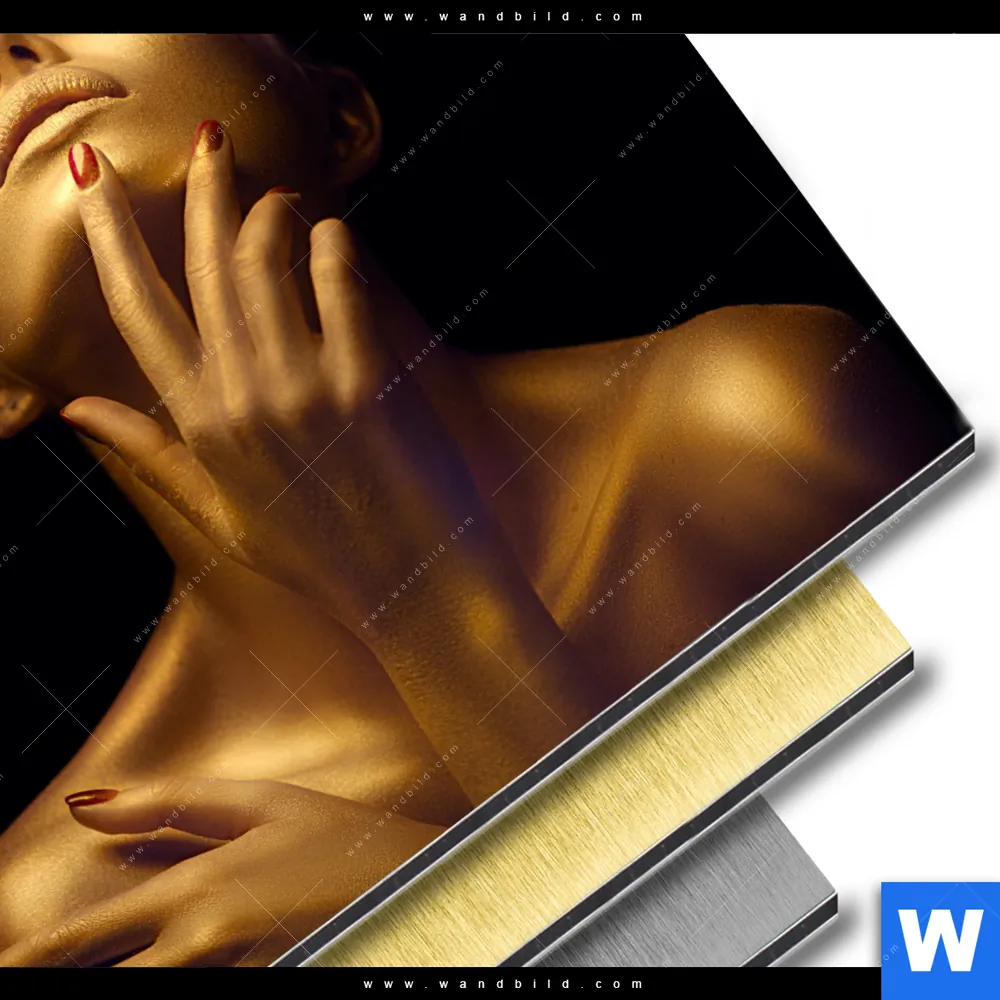 Aluminiumbild gebürstet | Golden Skin | Quadrat