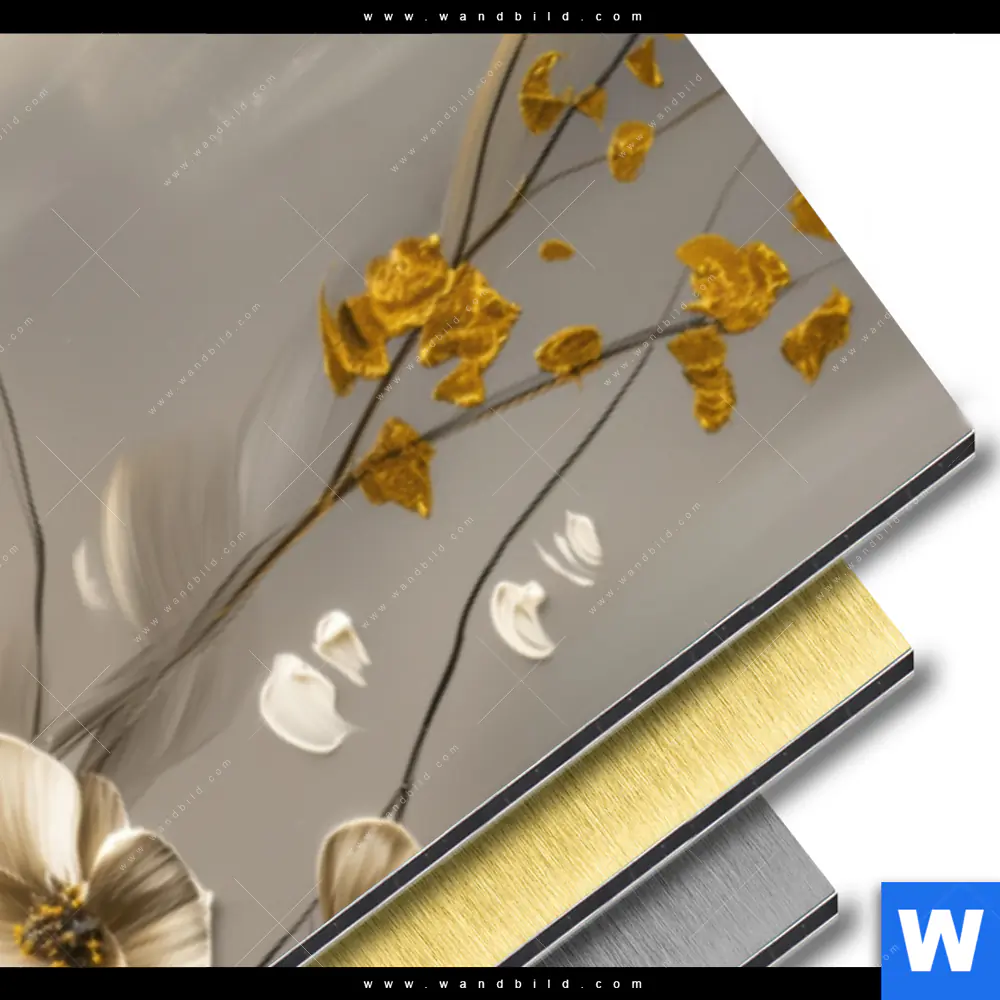 Aluminiumbild gebürstet | Goldene Blütenpoesie | Panorama