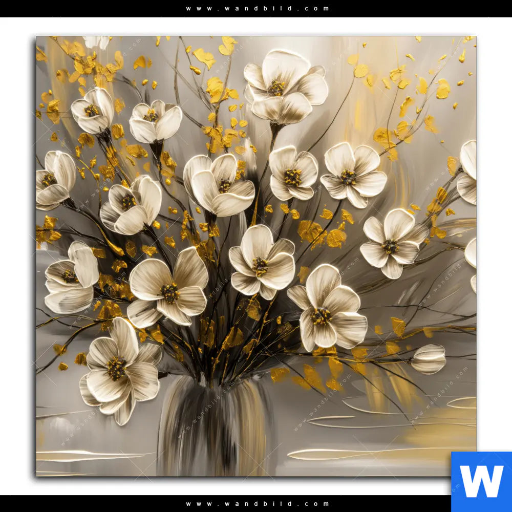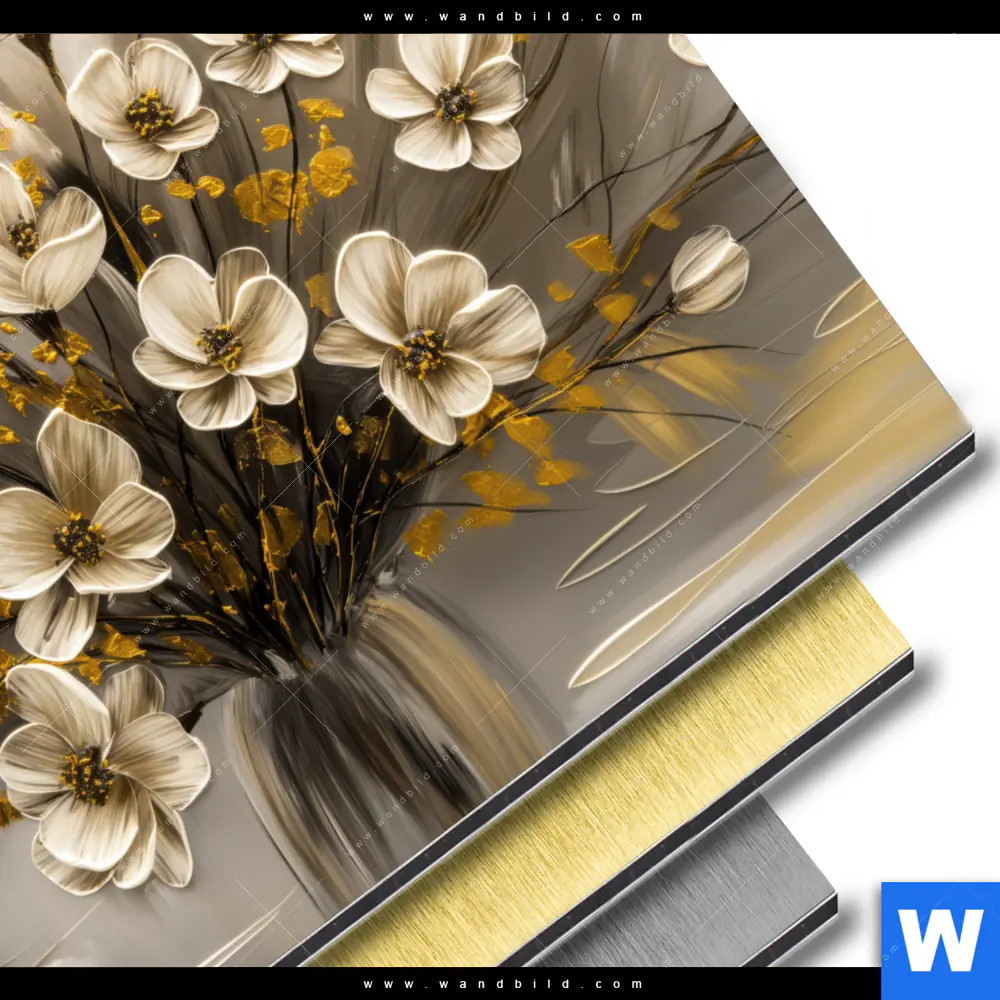 Aluminiumbild gebürstet | Goldene Blütenpoesie | Quadrat
