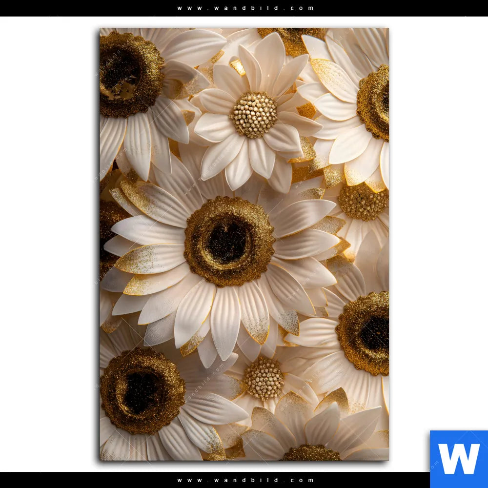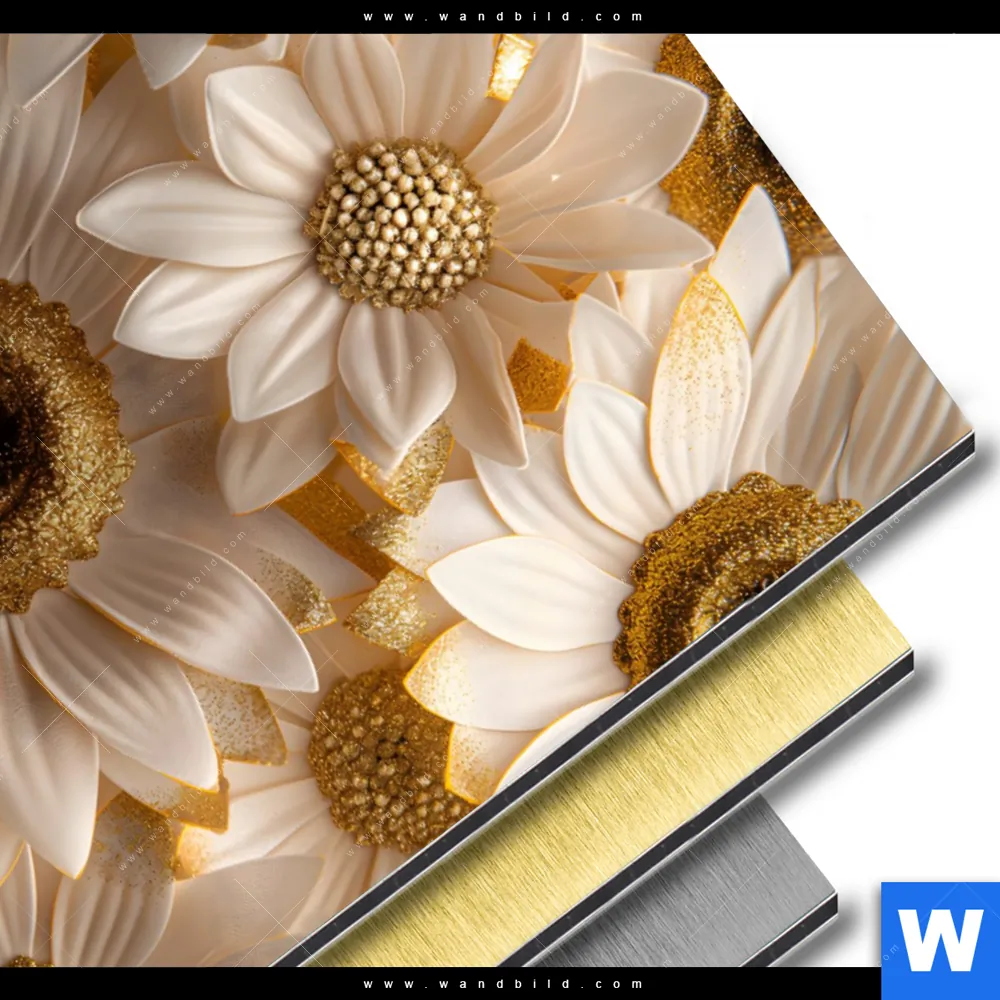 Aluminiumbild gebürstet | Goldene Blütenpracht | Hochformat