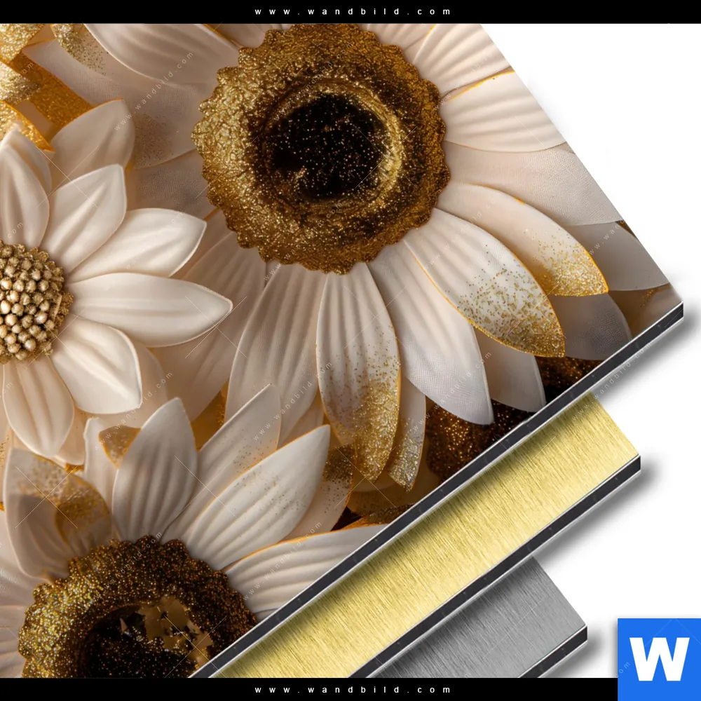 Aluminiumbild gebürstet | Goldene Blütenpracht | Quadrat