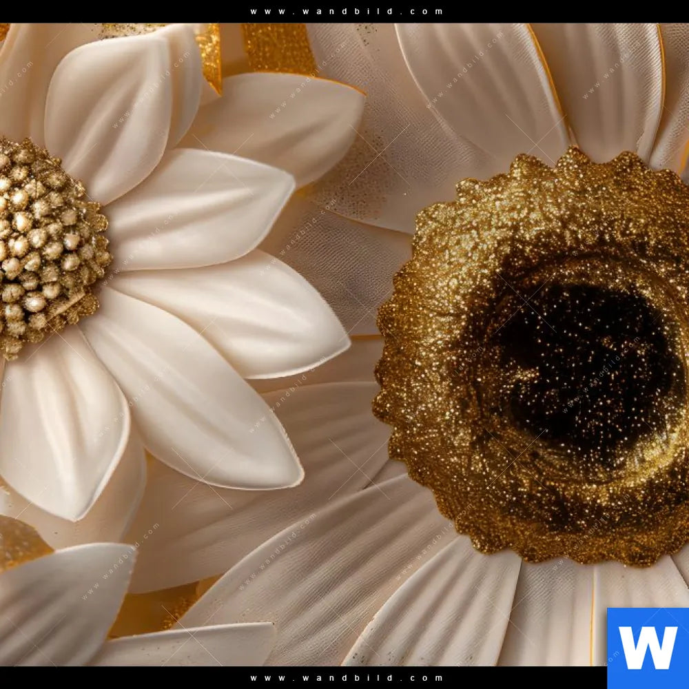 Aluminiumbild gebürstet | Goldene Blütenpracht | Rund