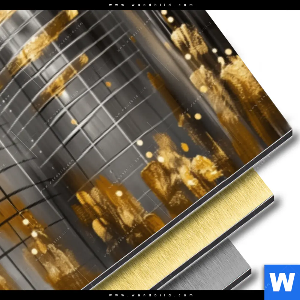 Aluminiumbild gebürstet | Goldene Skyline Vision | Panorama