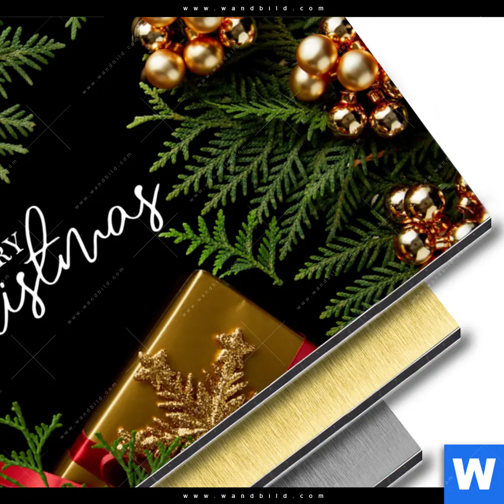 Aluminiumbild gebürstet | Goldene Weihnachtsgrüße | Querformat