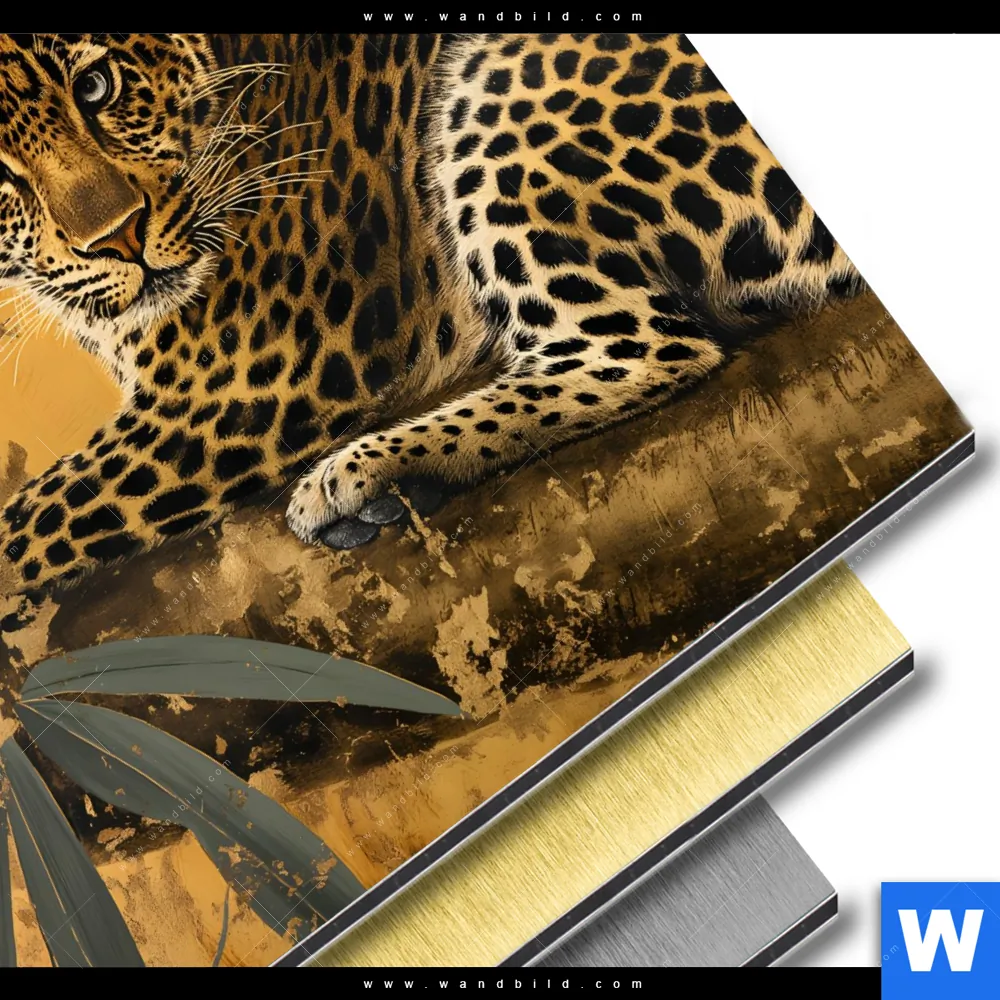 Aluminiumbild gebürstet | Goldener Leopard - Imposanter Jäger | Quadrat