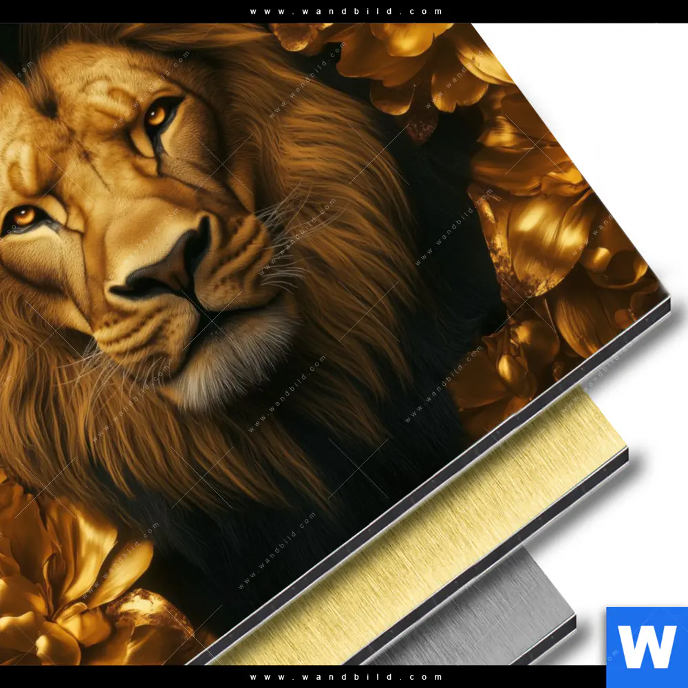 Aluminiumbild gebürstet | Goldener Löwe | Rund