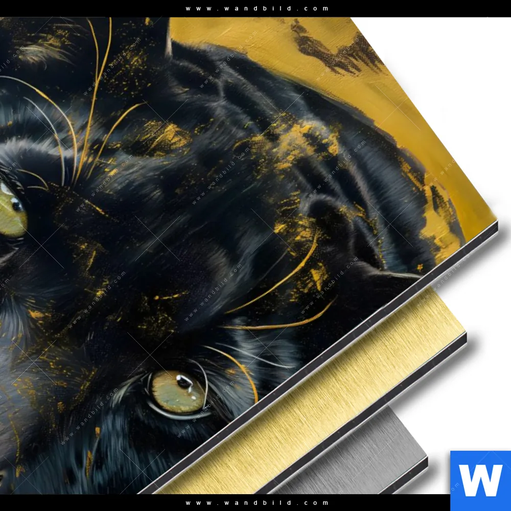 Aluminiumbild gebürstet | Goldener Panther | Hochformat