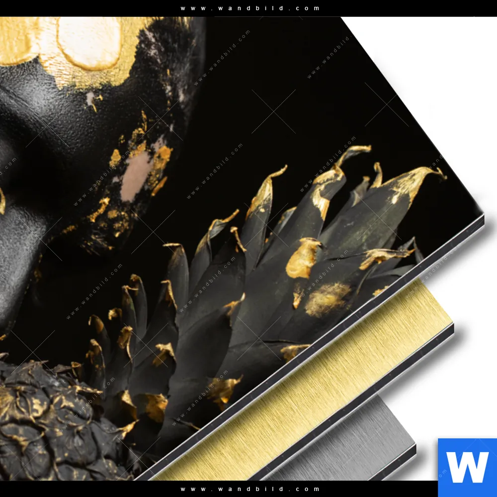 Aluminiumbild gebürstet | Goldenes Ananasmädchen No.2 | Hochformat