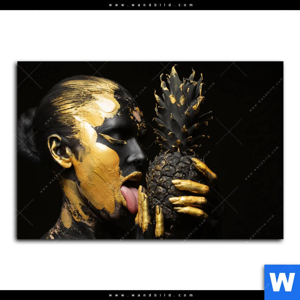 Aluminiumbild gebürstet | Goldenes Ananasmädchen No.2 | Querformat