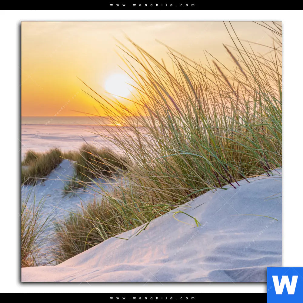 Aluminiumbild gebürstet | Goldenes Licht über Sanddünen | Quadrat