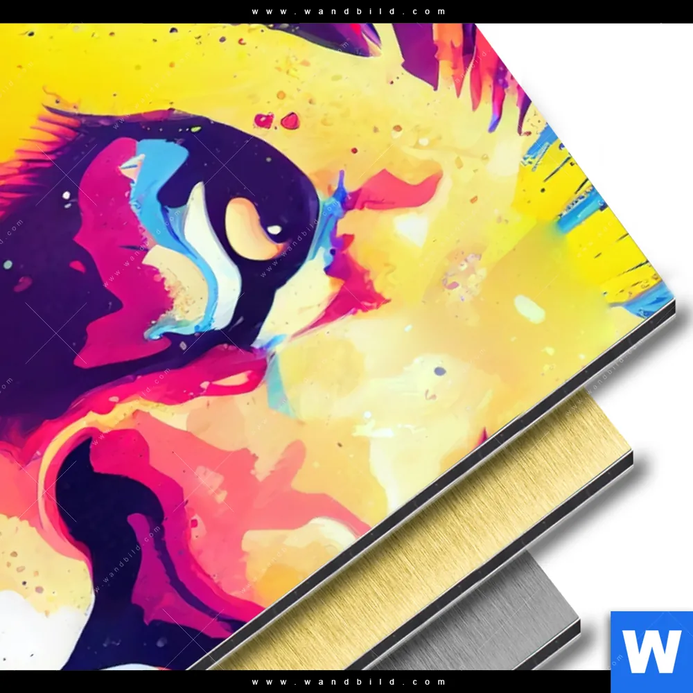 Aluminiumbild gebürstet | Graffiti Löwe | Hochformat