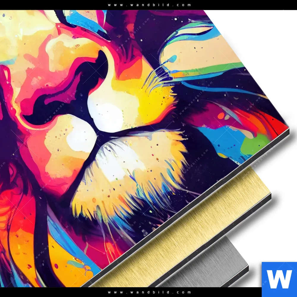 Aluminiumbild gebürstet | Graffiti Löwe | Quadrat