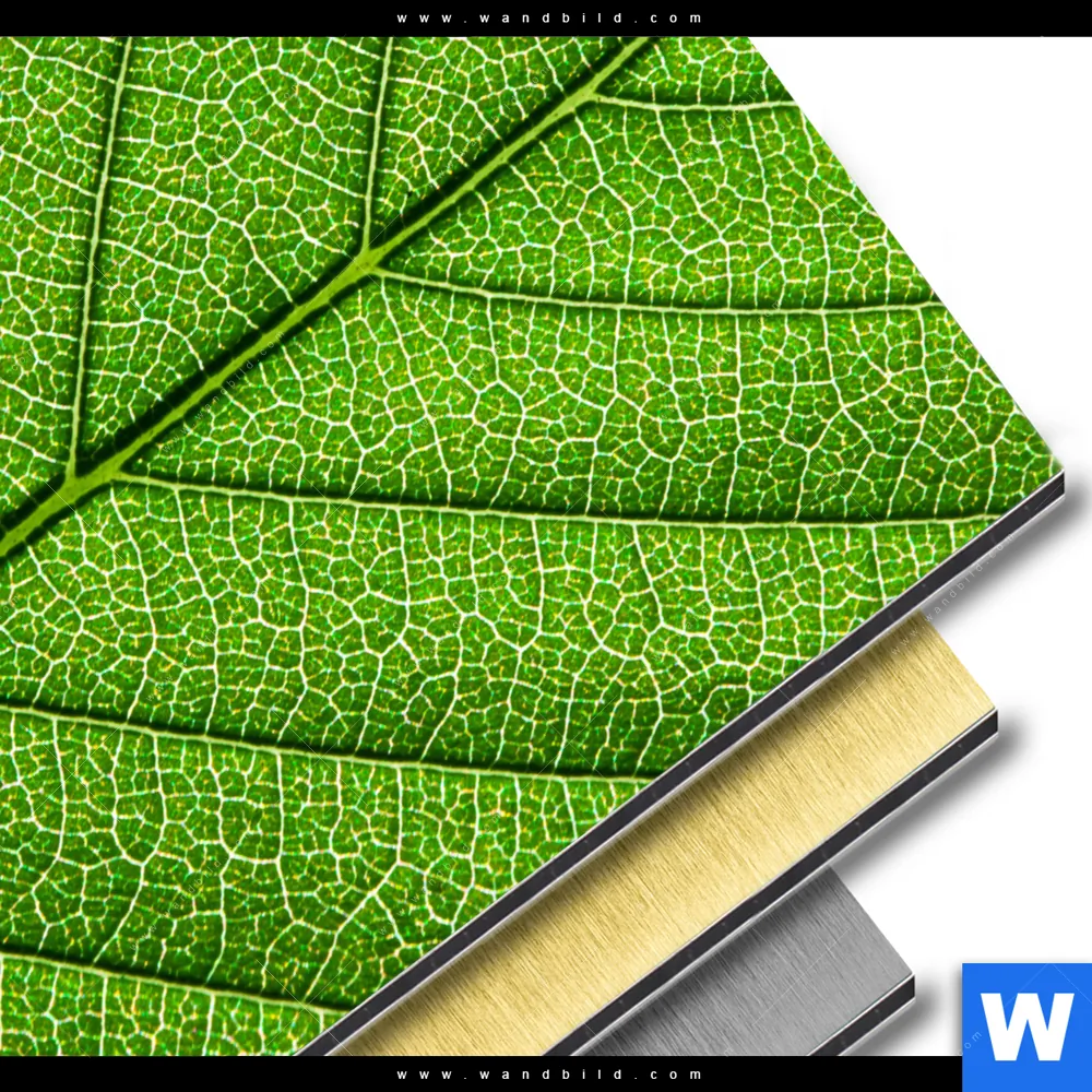 Aluminiumbild gebürstet | Grüne Blattadern | Rund