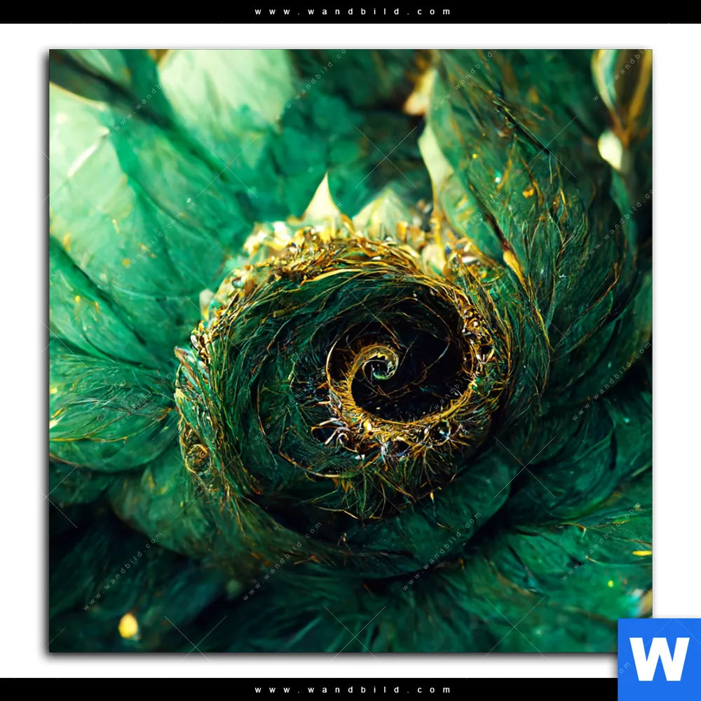 Aluminiumbild gebürstet | Grüne Spiralblätter | Quadrat