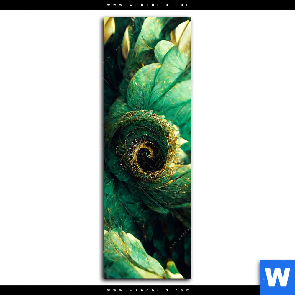 Aluminiumbild gebürstet | Grüne Spiralblätter | Schmal