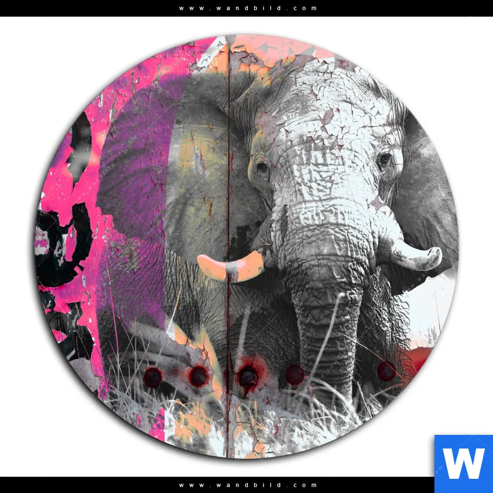 Aluminiumbild gebürstet | Grunge Elefant | Rund