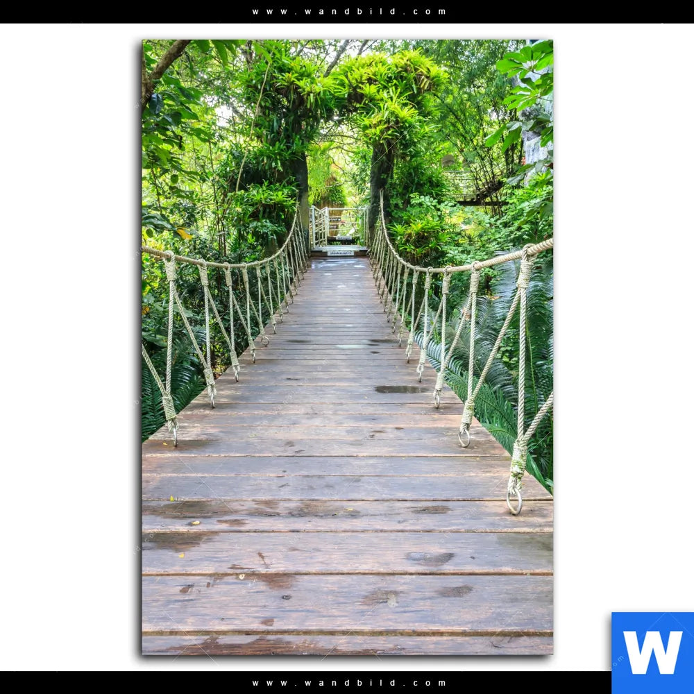 Aluminiumbild gebürstet | Hängebrücke im Dschungel | Hochformat