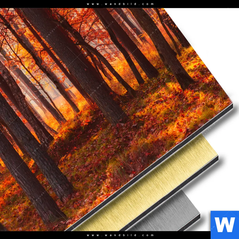 Aluminiumbild gebürstet | Herbstwald | Quadrat