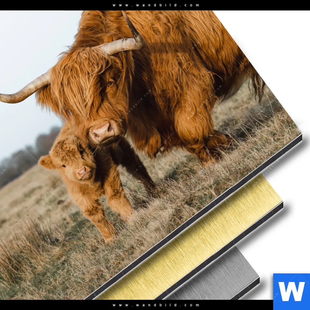 Aluminiumbild gebürstet | Highlander Familie | Quadrat