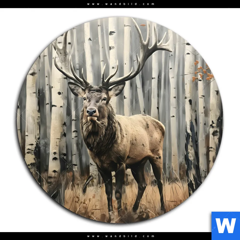 Aluminiumbild gebürstet | Hirsch im Birkenwald | Rund