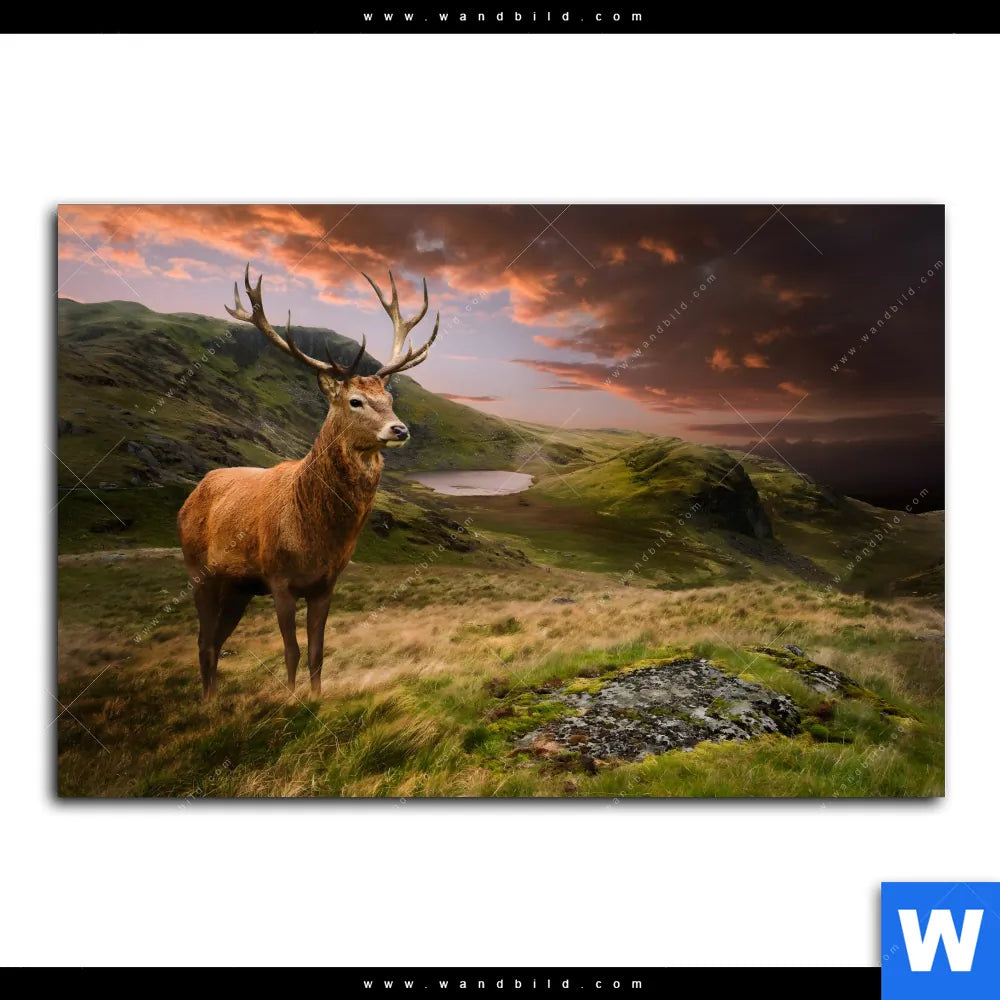 Aluminiumbild gebürstet | Hirsch in Gebirgslandschaft | Querformat