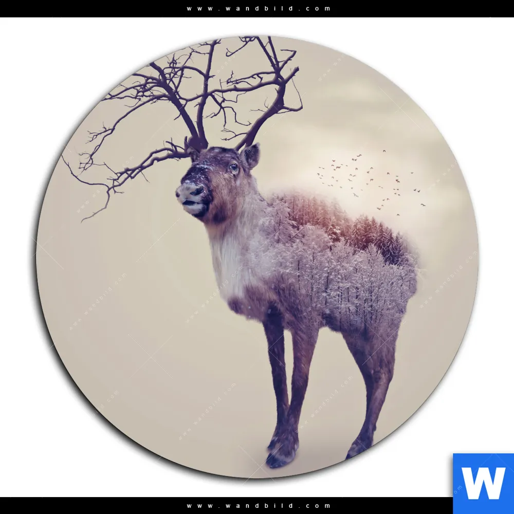 Aluminiumbild gebürstet | Hirsch & Wald No.1 | Rund