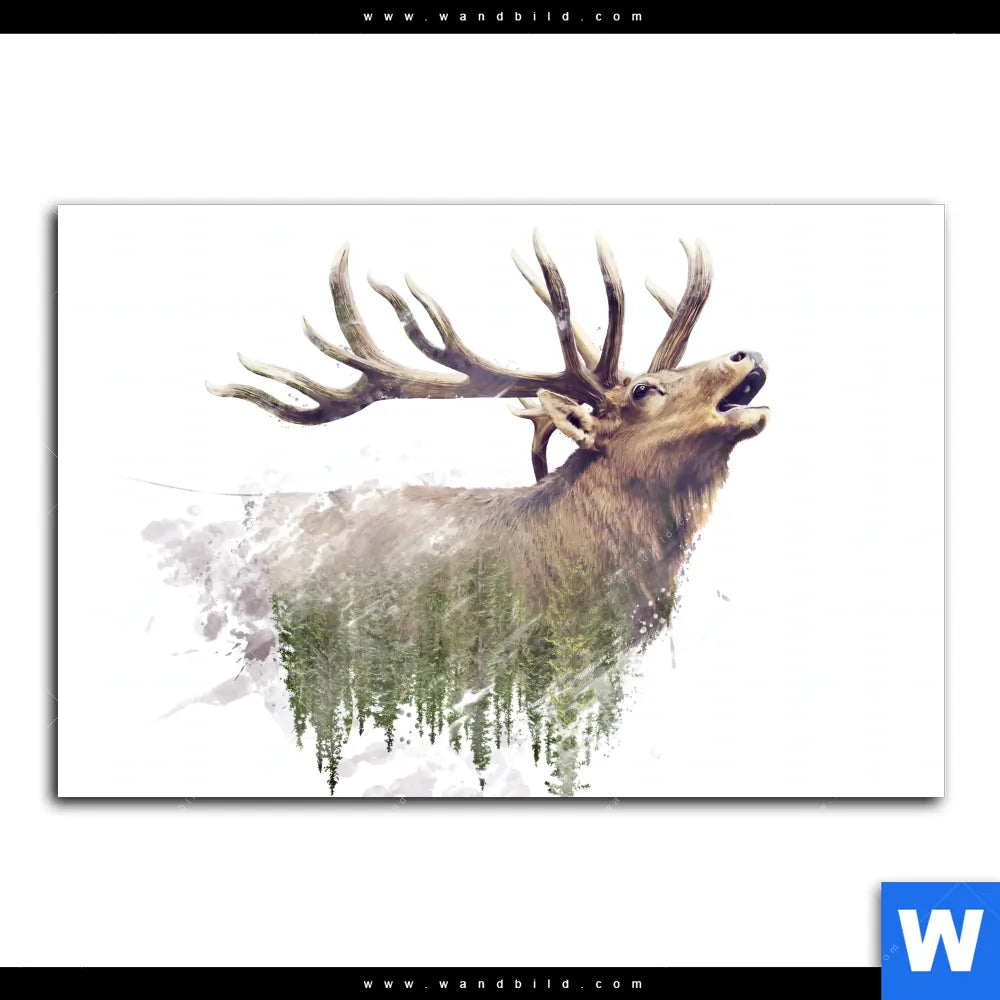 Aluminiumbild gebürstet | Hirsch & Wald No.2 | Querformat