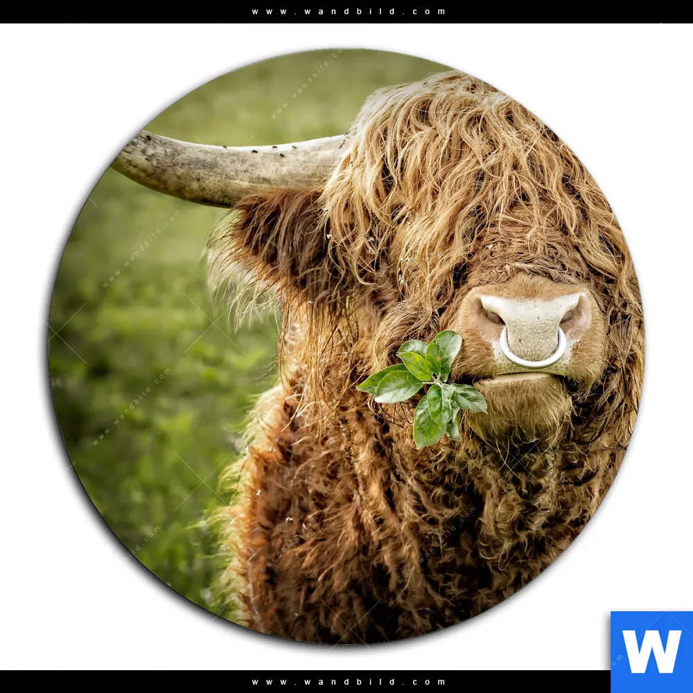 Aluminiumbild gebürstet | Hochland-Rind mit Nasenring | Rund