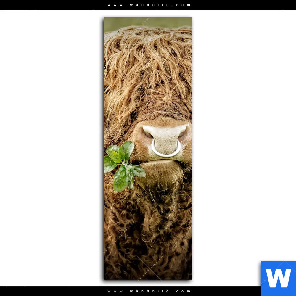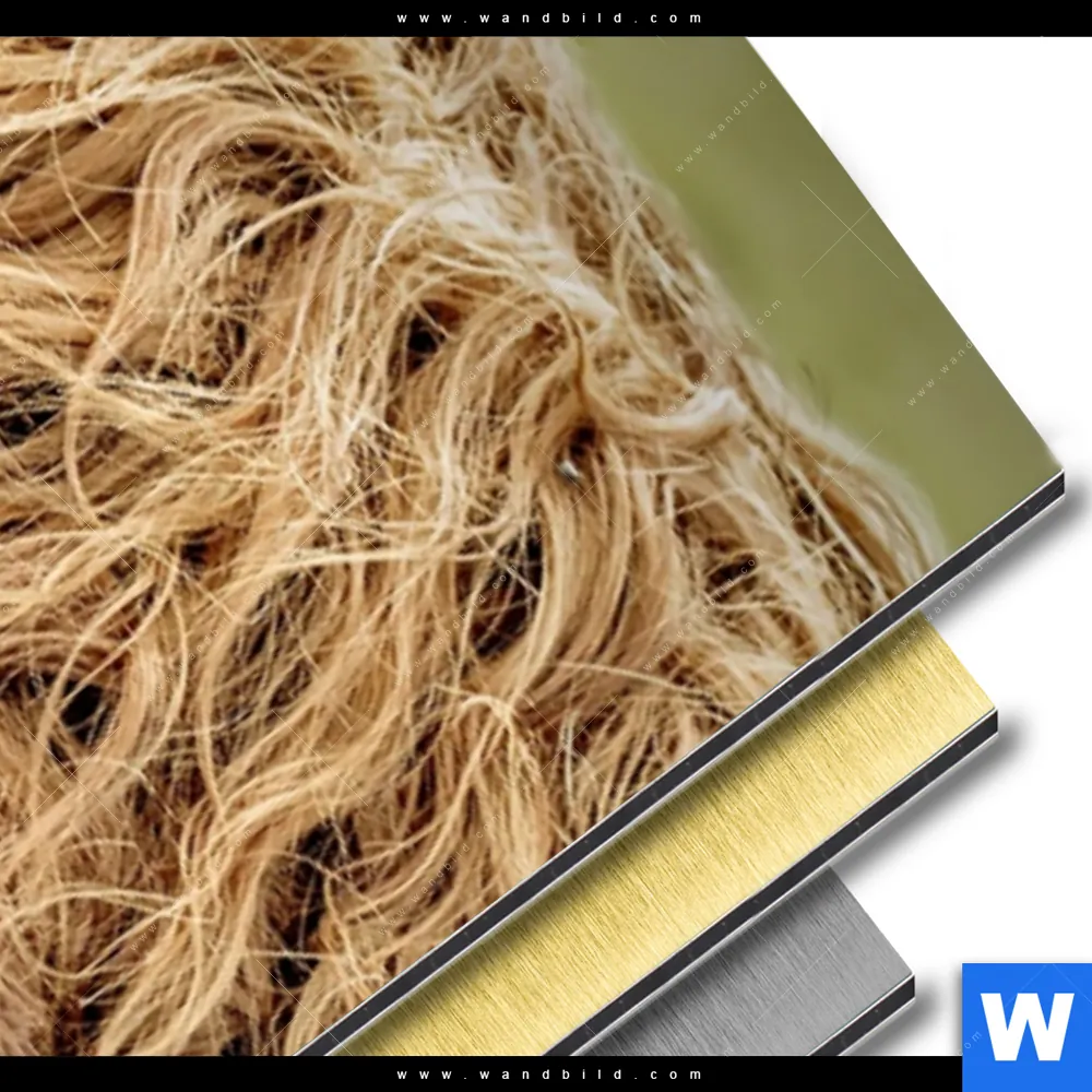 Aluminiumbild gebürstet | Hochland-Rind mit Nasenring | Schmal