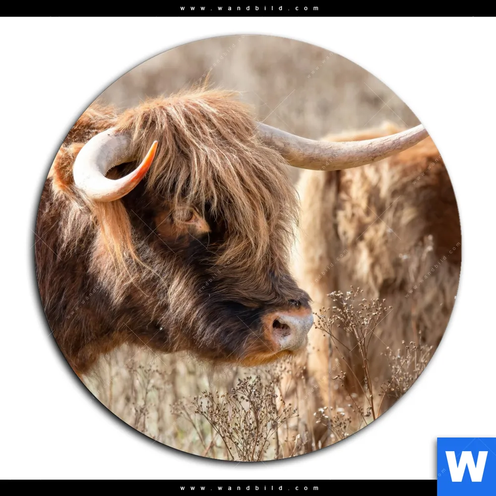 Aluminiumbild gebürstet | Hochlandrind auf Weide | Rund