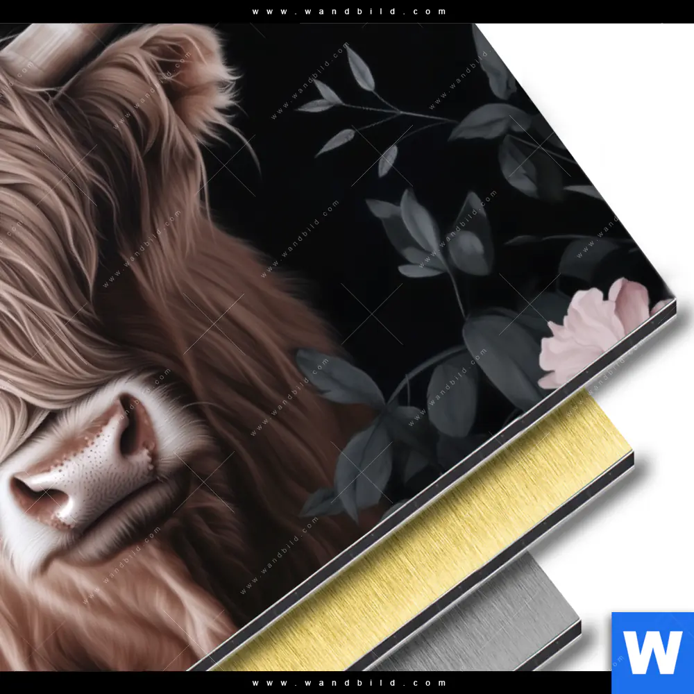 Aluminiumbild gebürstet | Hochlandrind - Wilde Schönheit | Querformat