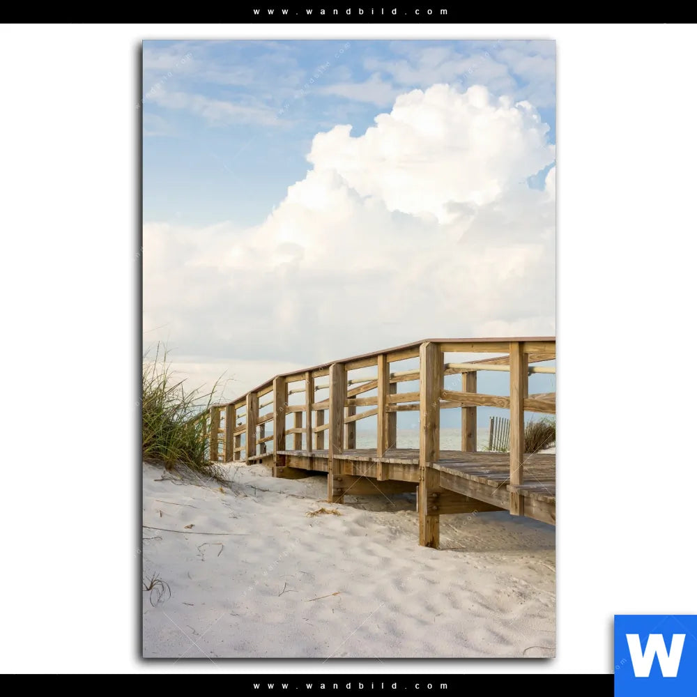 Aluminiumbild gebürstet | Holzsteg & Dünen | Hochformat