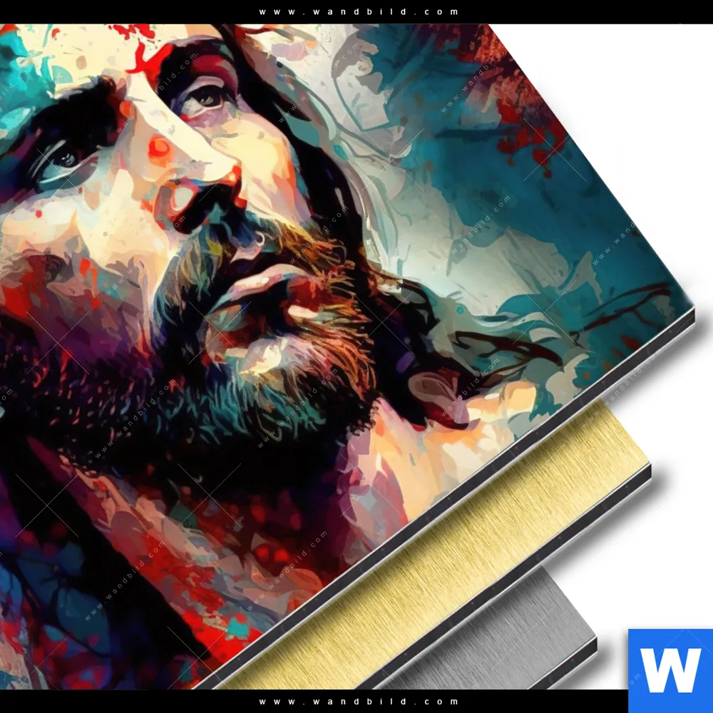 Aluminiumbild gebürstet | Jesus Christus mit Dornenkrone | Rund