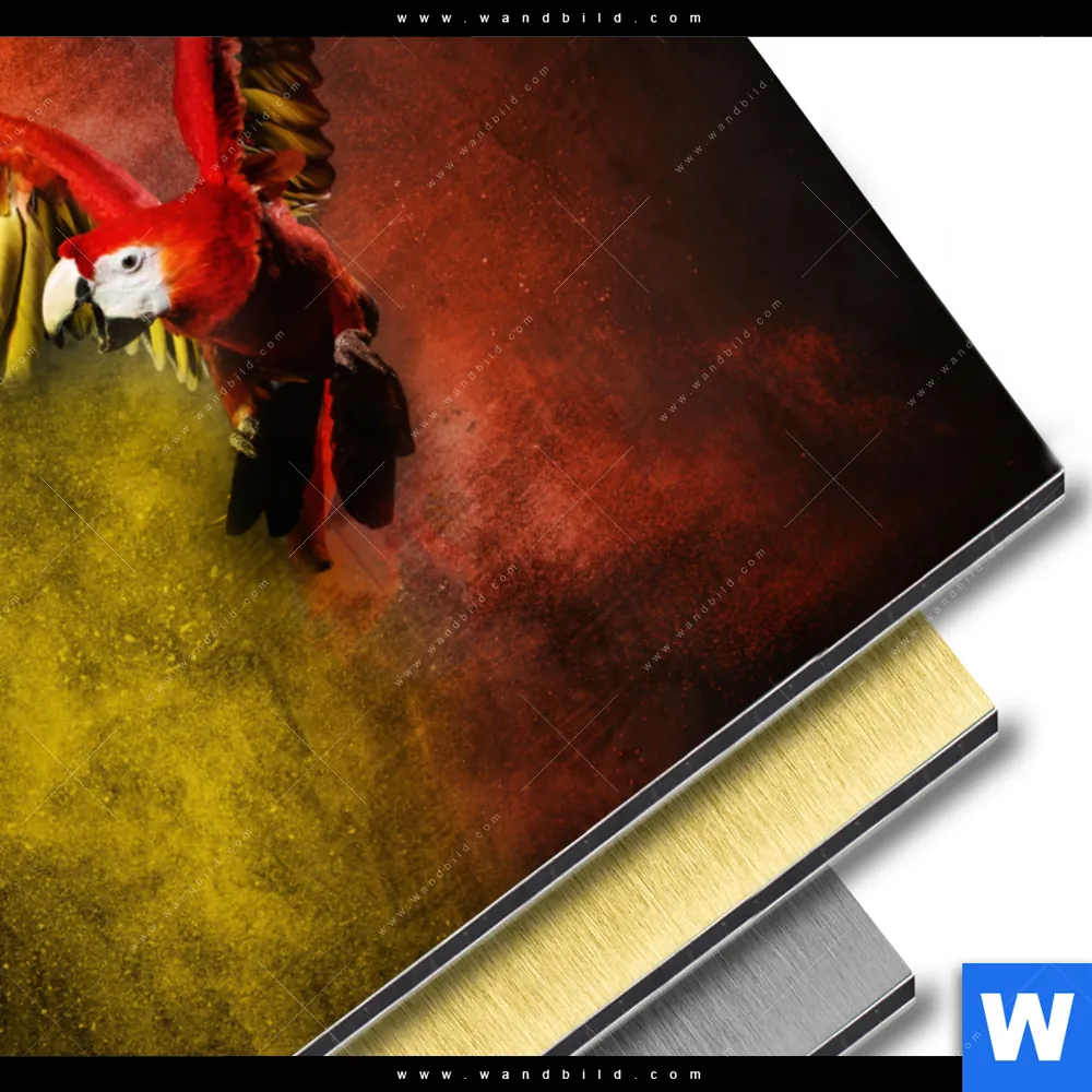 Aluminiumbild gebürstet | Kampf der Papageien | Querformat