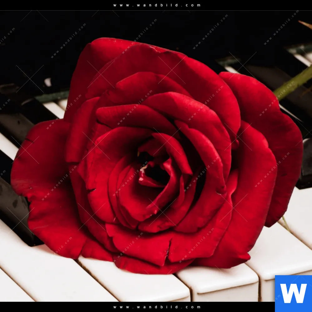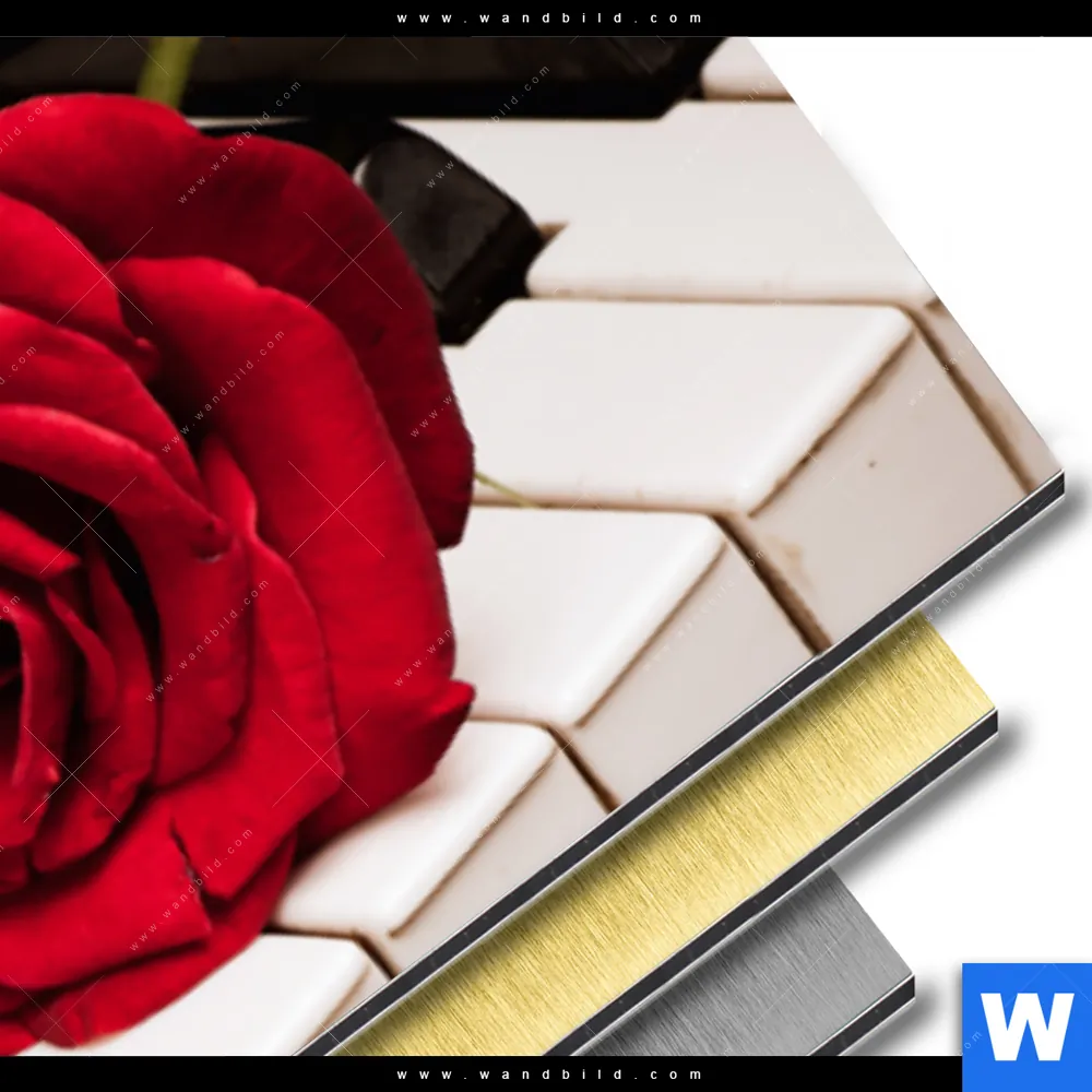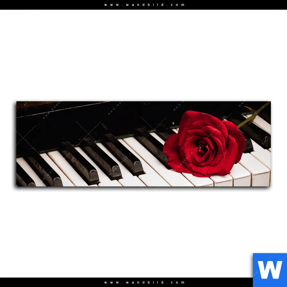 Aluminiumbild gebürstet | Klavier & Rose | Panorama