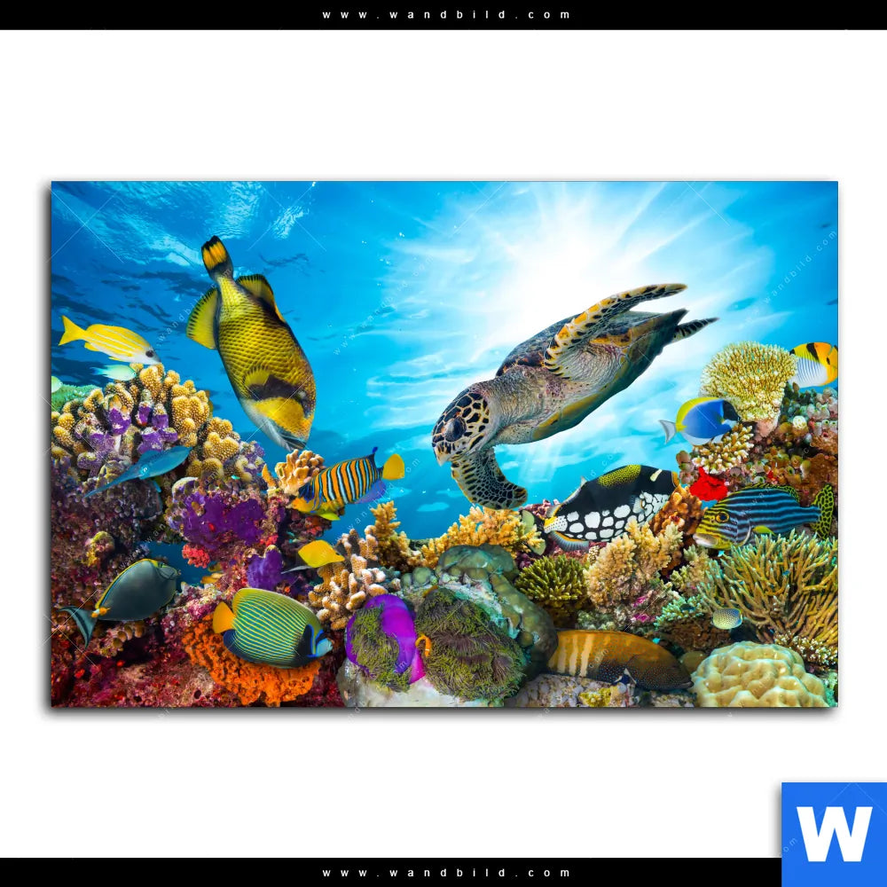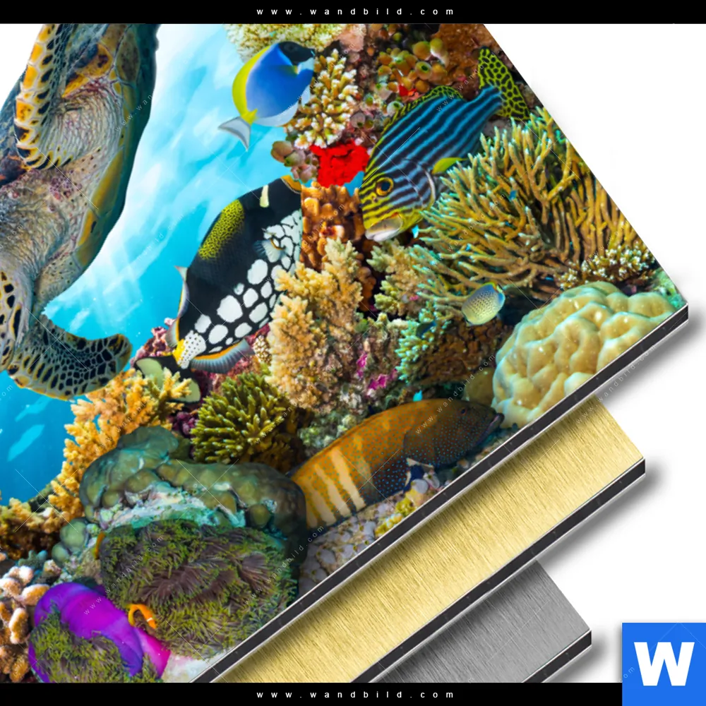 Aluminiumbild gebürstet | Korallen & Fische | Querformat