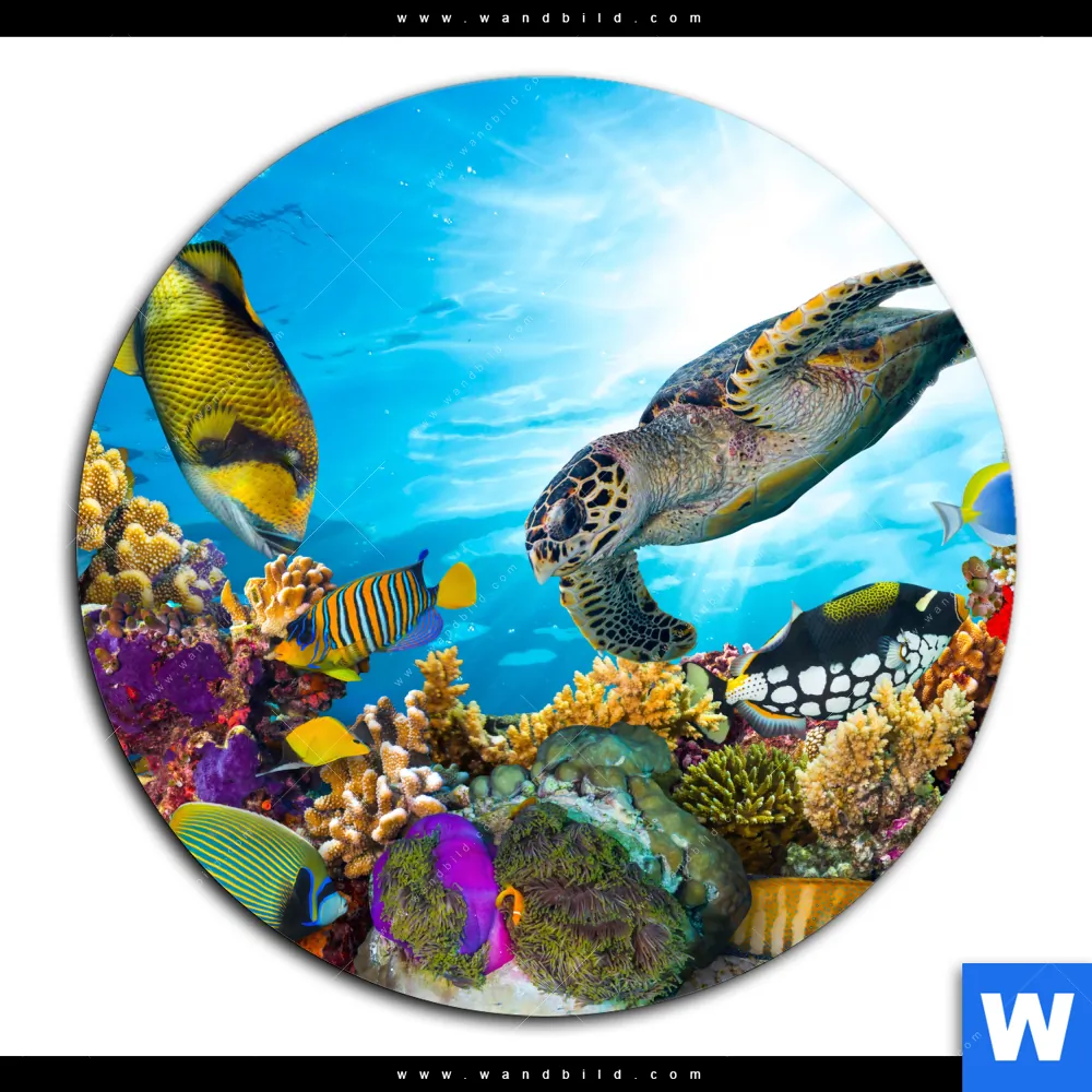 Aluminiumbild gebürstet | Korallen & Fische | Rund