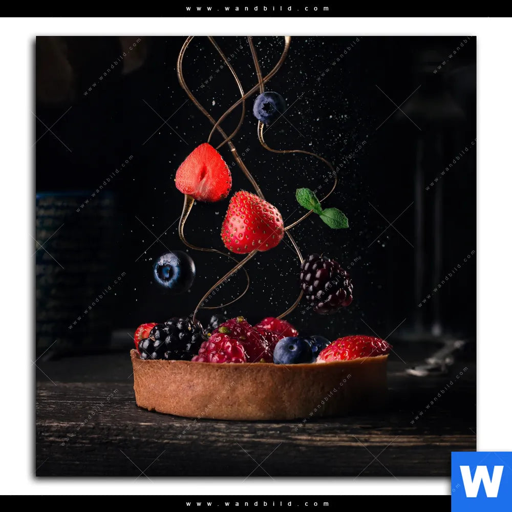Aluminiumbild gebürstet | Kuchen mit frischen Beeren | Quadrat